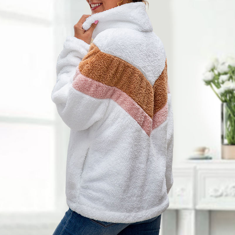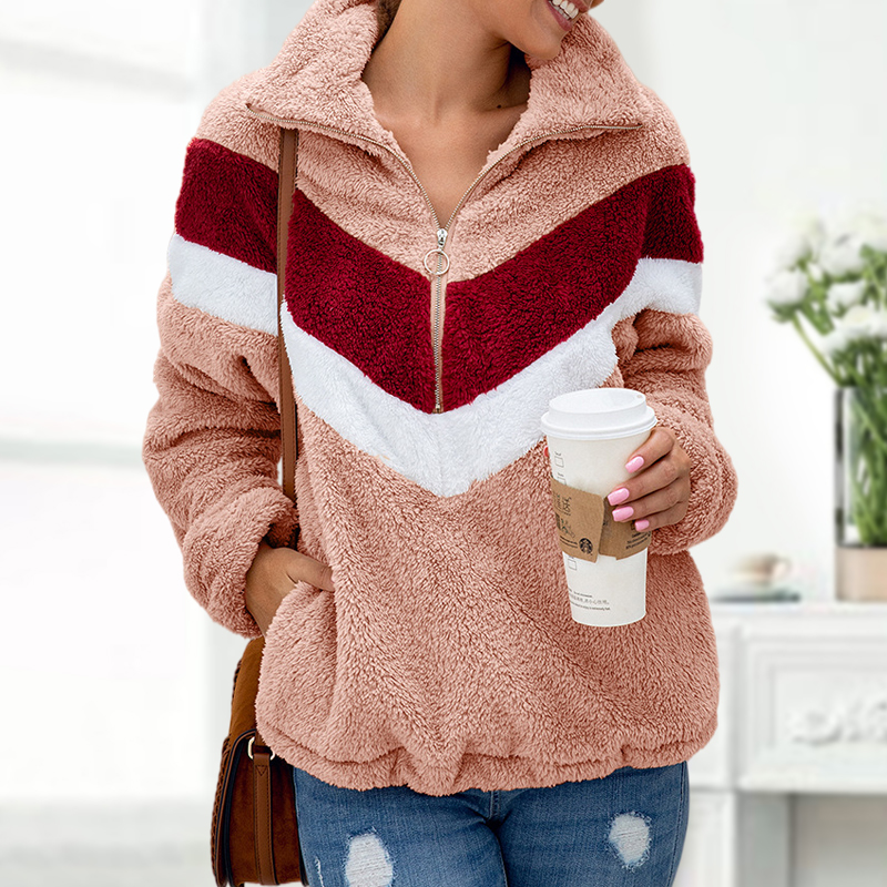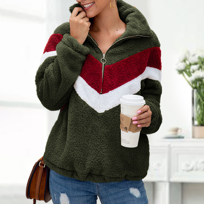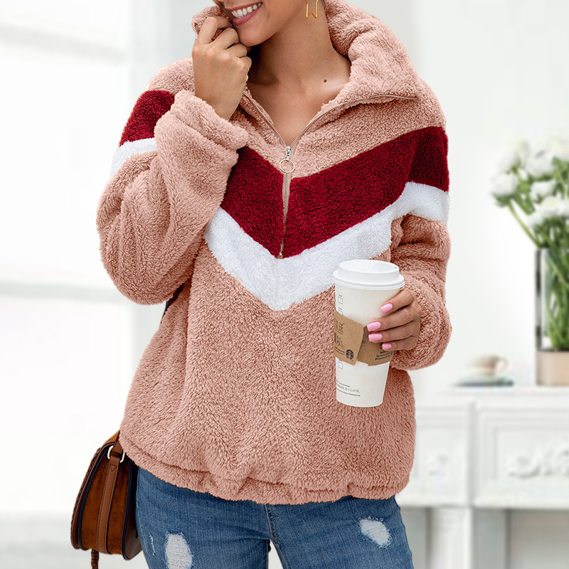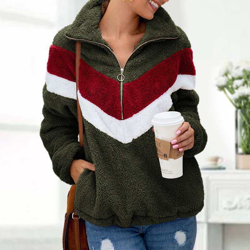 Color Block Zipper Fleece Sweatshirt