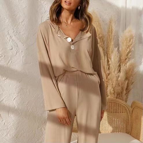 Cotton Blended Crepe Long Sleeve Shirt and Shorts Set
