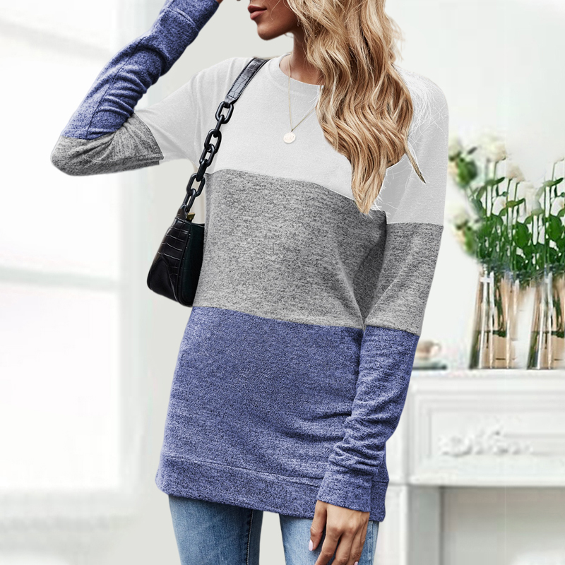 O-Neck Color Blocking Long Sleeve Casual T-shirt