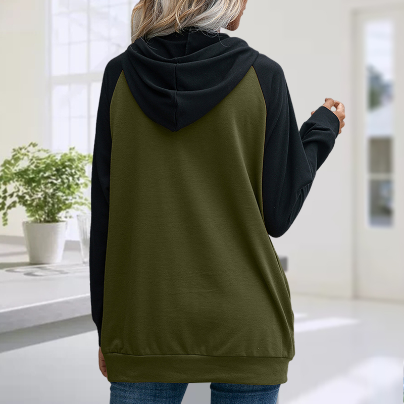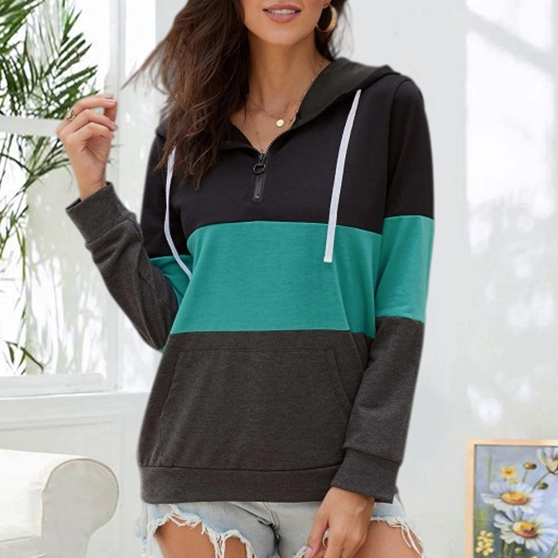 Color Blocking Hooded Zipper Long Sleeve Sweatshirt
