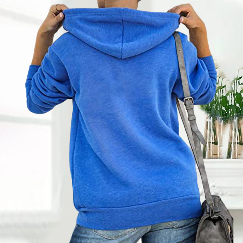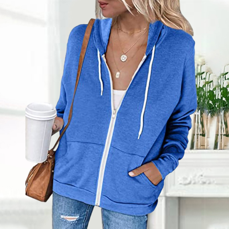 Solid Color Drawstring Long Sleeve Zipper Hooded Sweatshirt