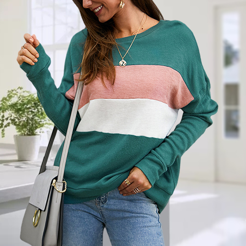 O-neck Color Block Long Sleeve Loose Sweatshirt