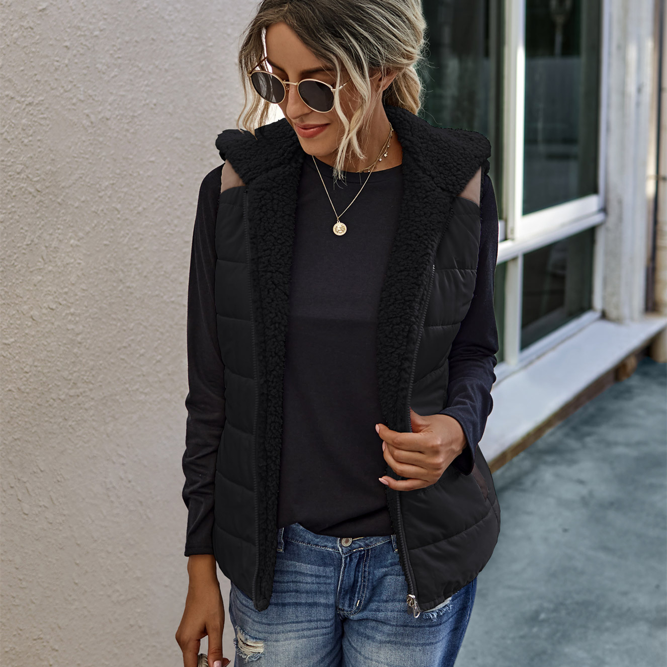 Solid Color Plush Warm Vest Jacket