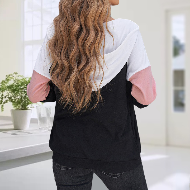 Color Blocking Hooded Long-Sleeved Sweatshirt Jacket