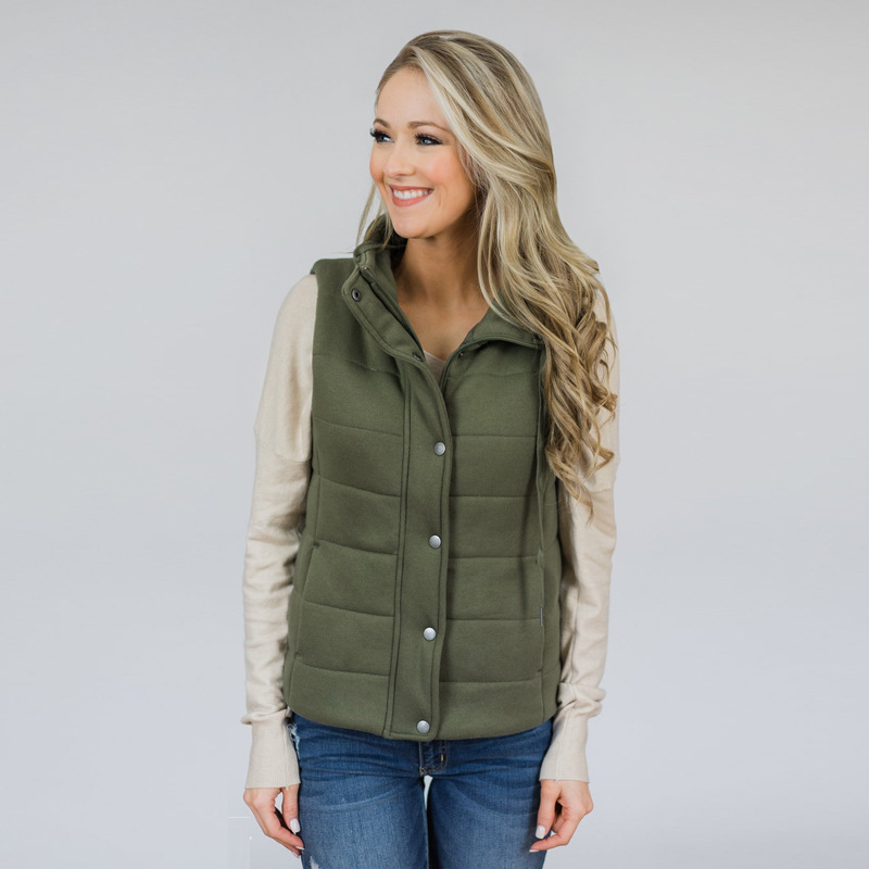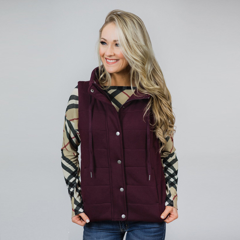 Solid Color Stand-Up Collar Zipper Vest