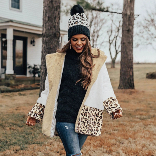 Leopard Print Patchwork Plush Jacket