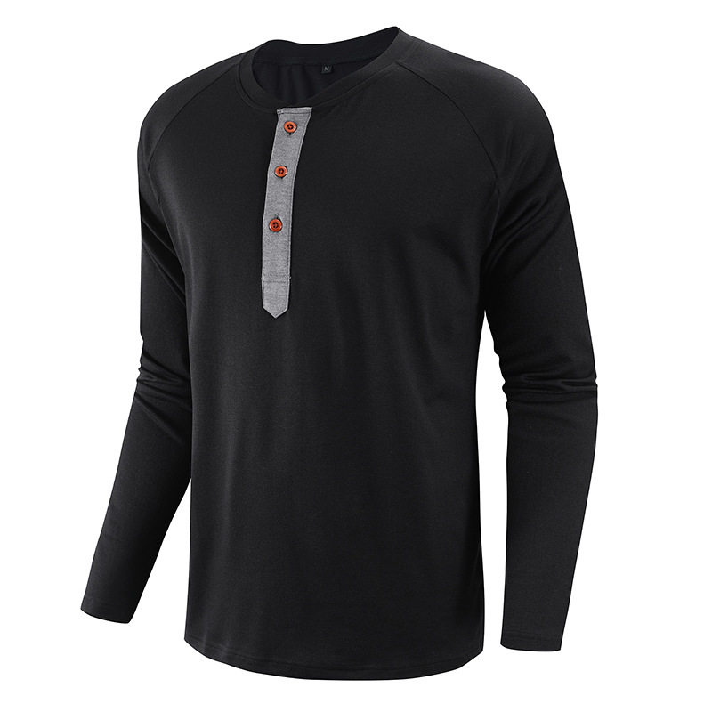 Solid color casual long sleeve men's Henley shirt top