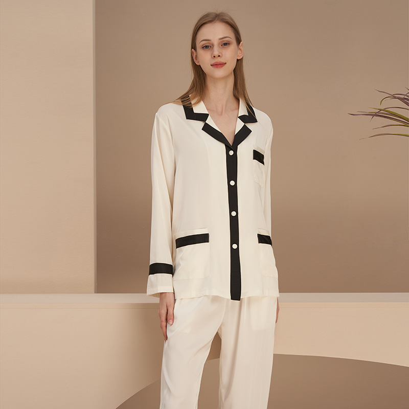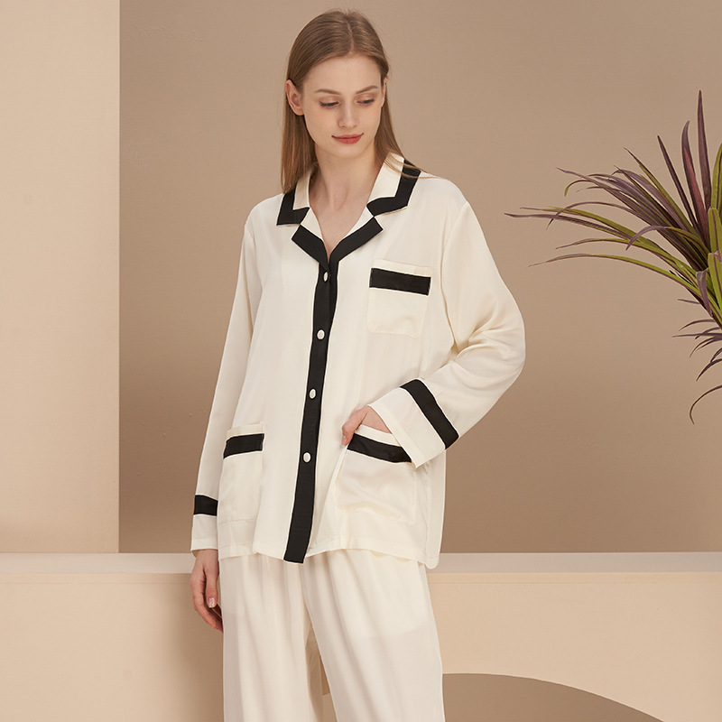 Black Colour Trimmed Shirt and Pants Pyjama Set