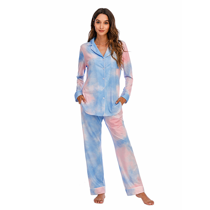 Tie-dye Long Sleeve Shirt and Pants Pyjama Set in Blue and Pink