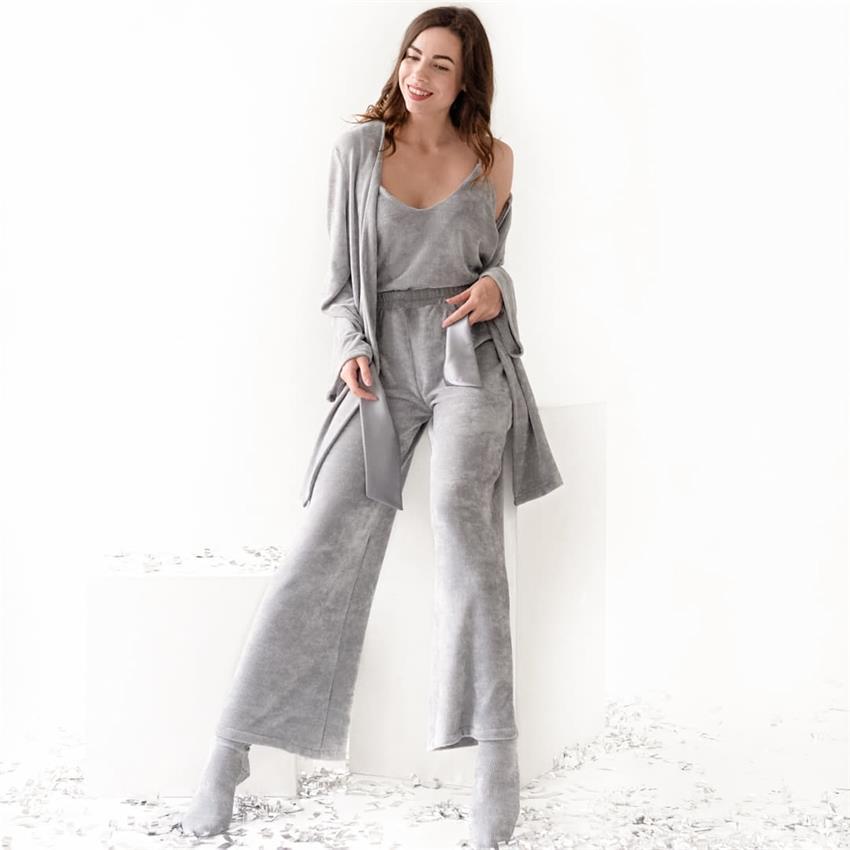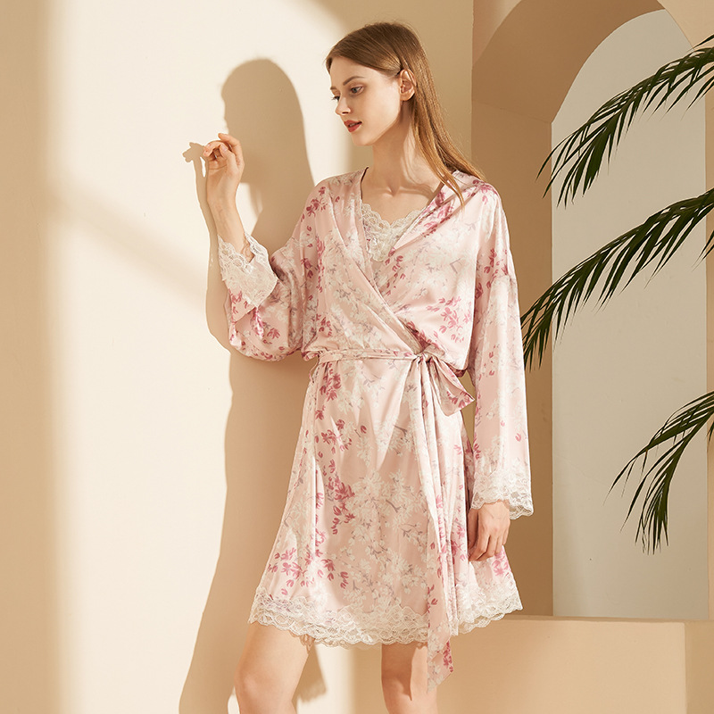 Simulated Silk Thin Banana Leaf Print Women's Pajamas Set