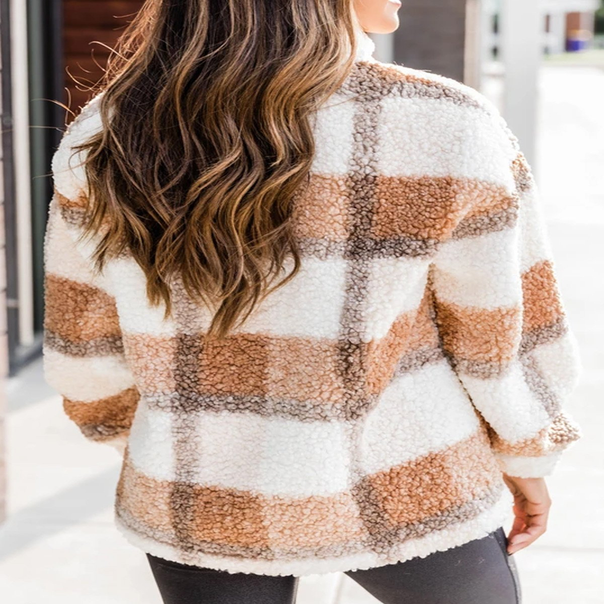 Plaid Print Zipper Half Cardigan Casual Plush Sweater