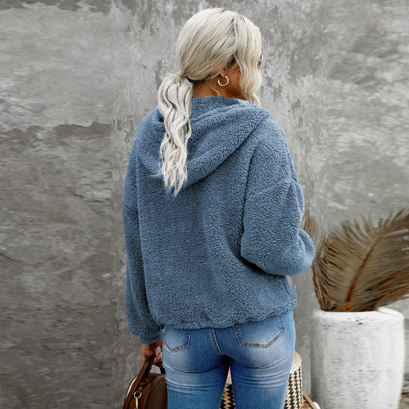 Solid Color Zipper Half Open Collar Pocket Long Sleeve Thickened Plush Sweater