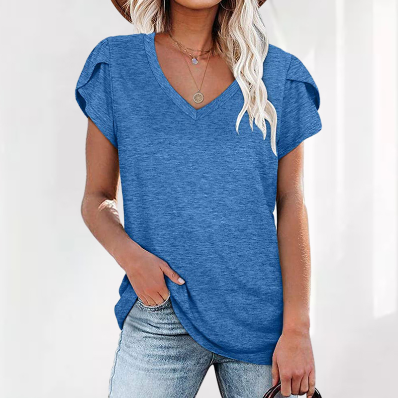 Solid Color V-neck Short-Sleeved T-shirt