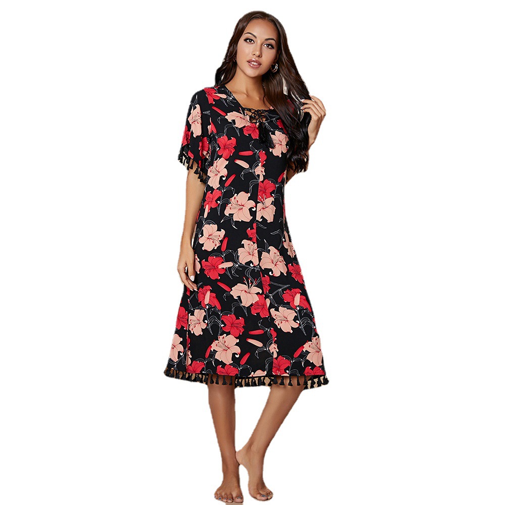Floral Print Tassel Beaded Maxi Dress