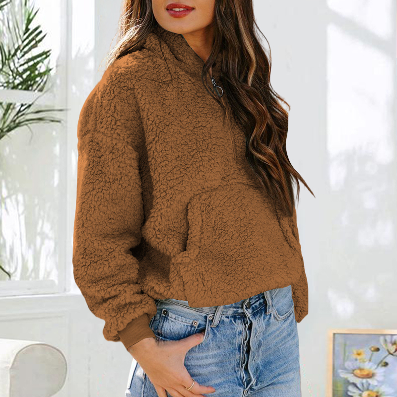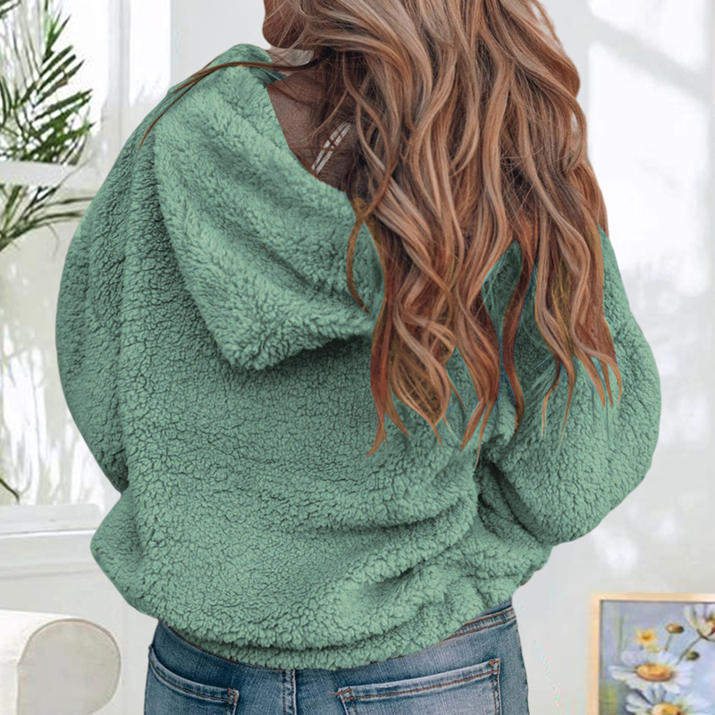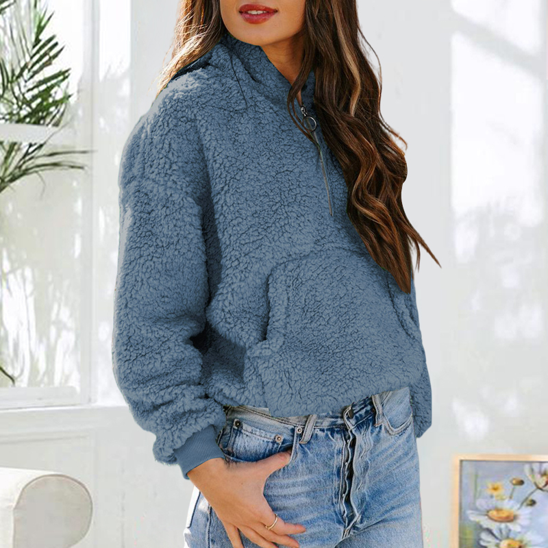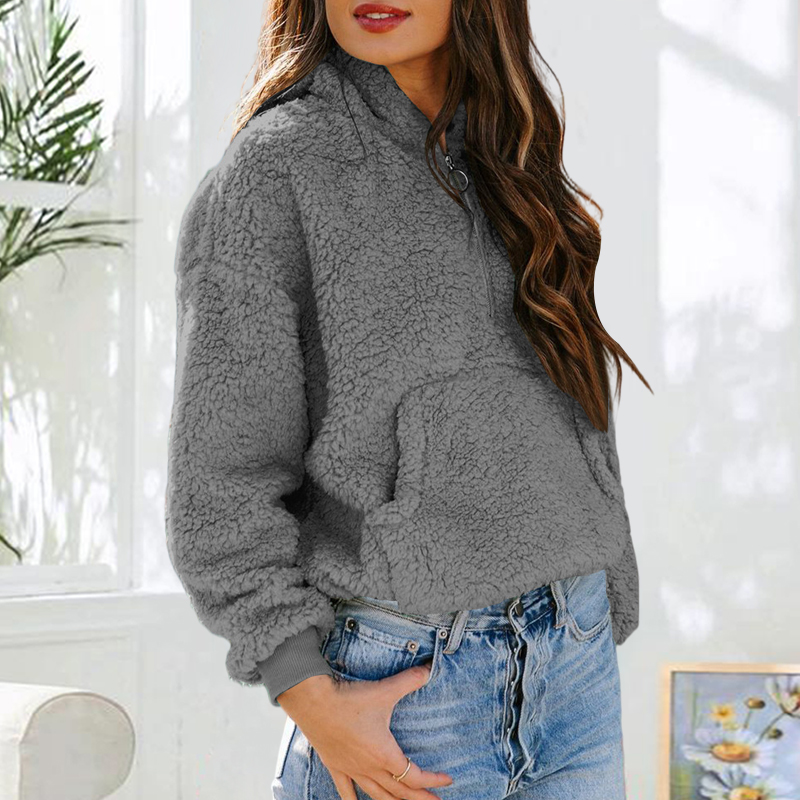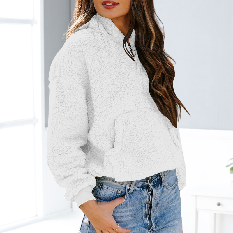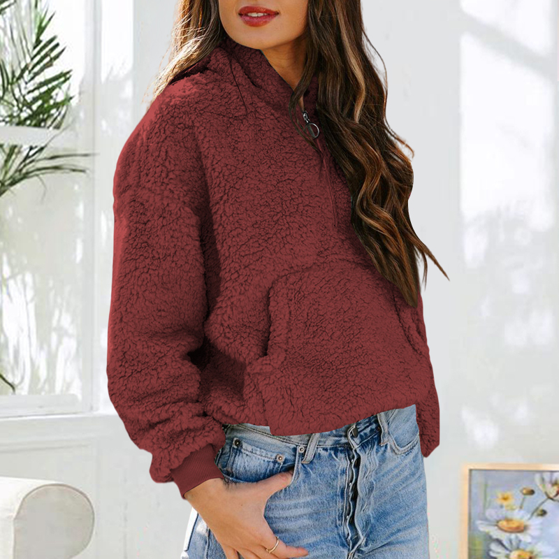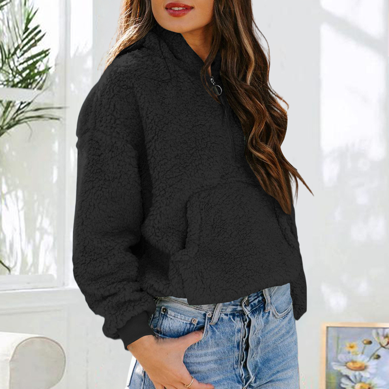 Solid Color Zipper Hooded Fleece Sweatshirt