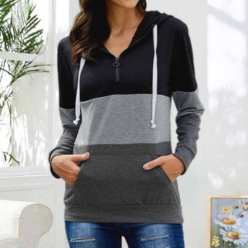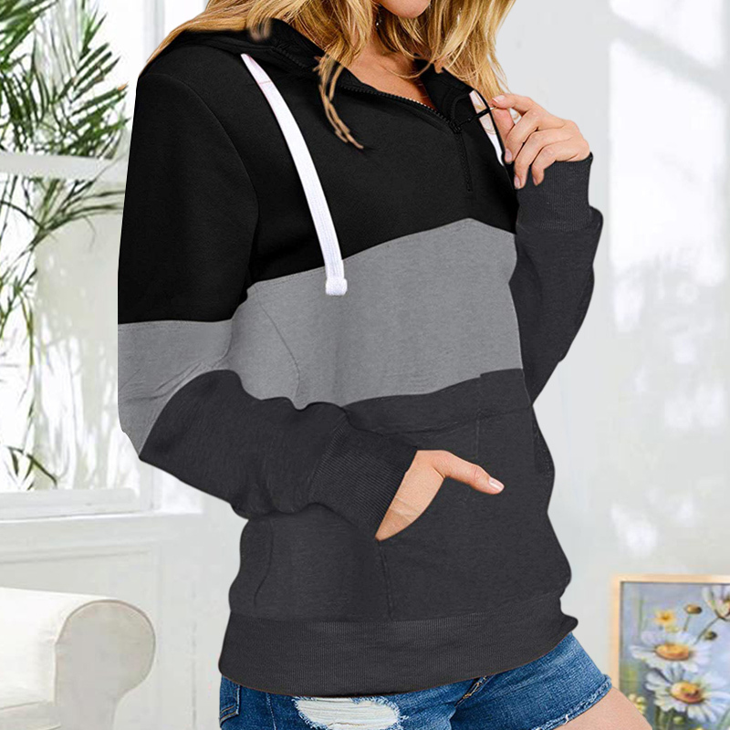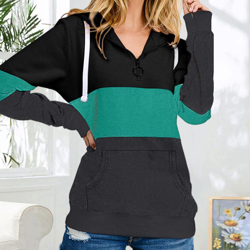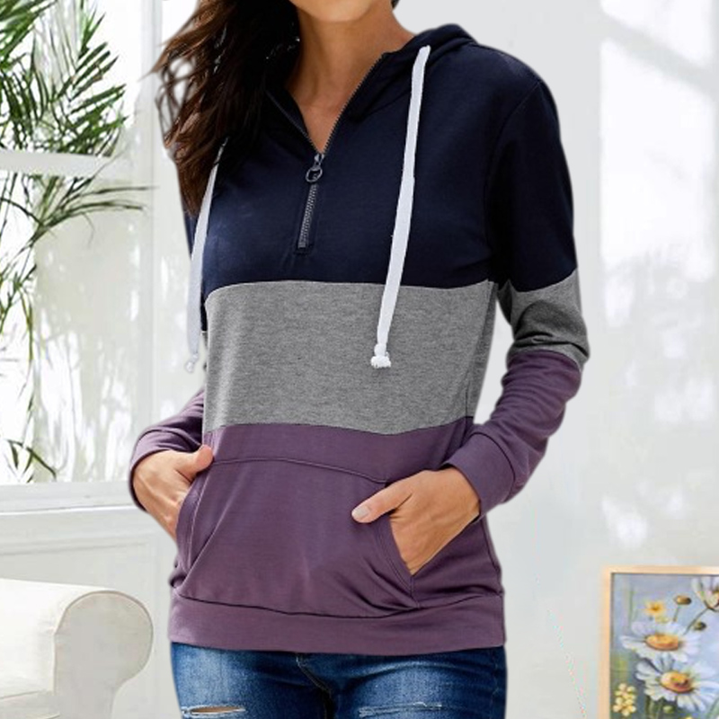 Color Blocking Hooded Zipper Long Sleeve Sweatshirt