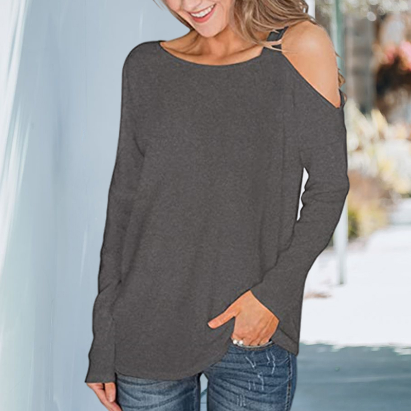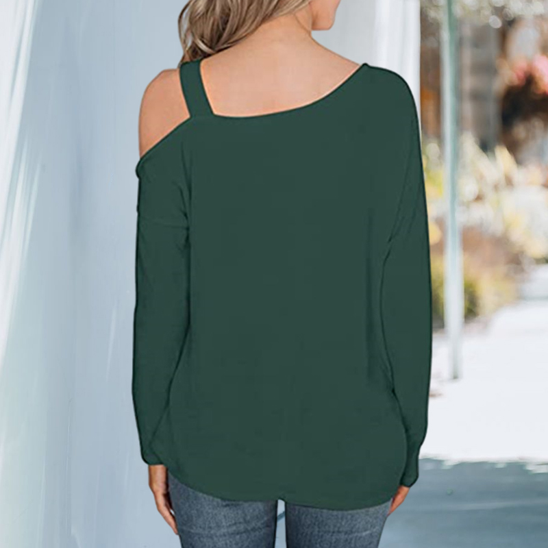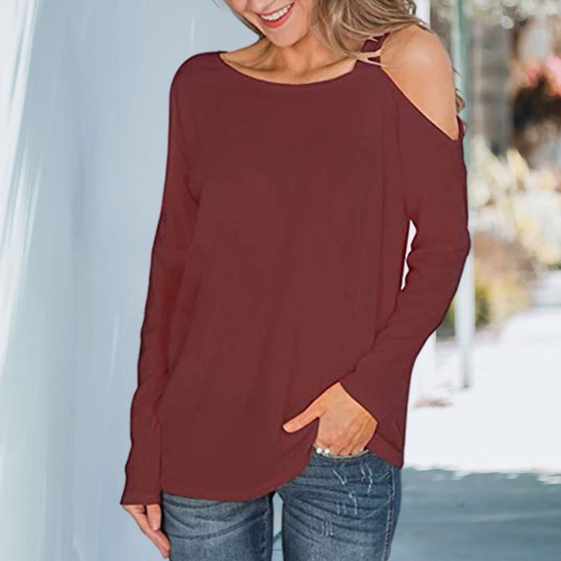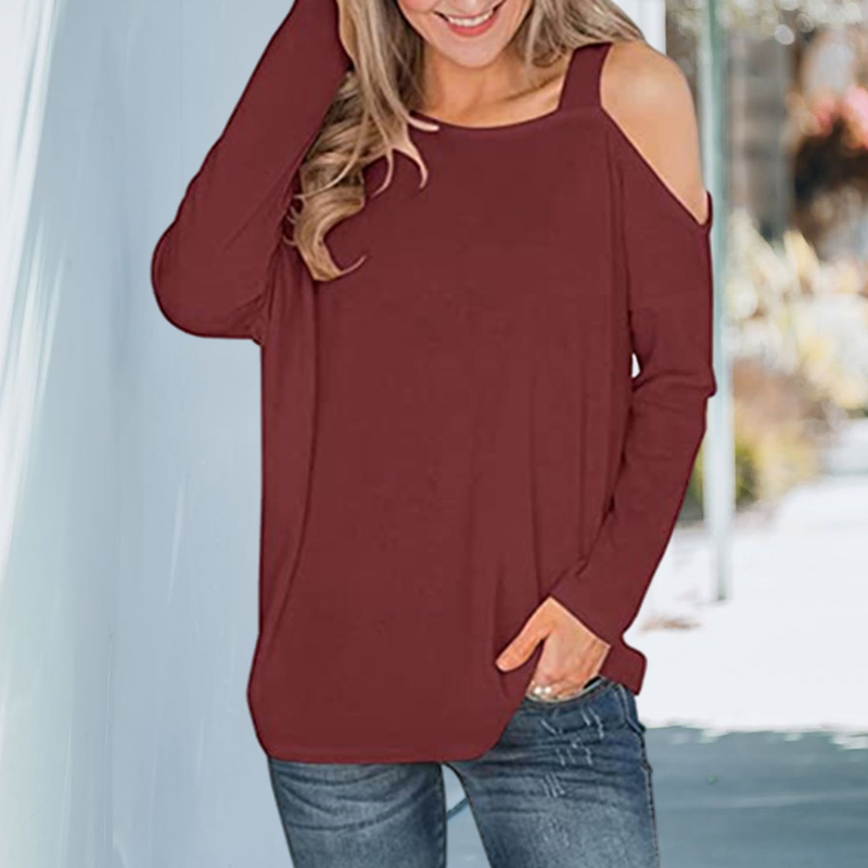 Plus Size Off Shoulder Solid Color Long Sleeve T-shirt