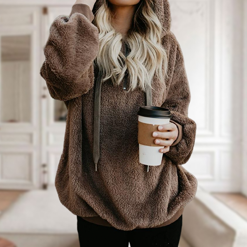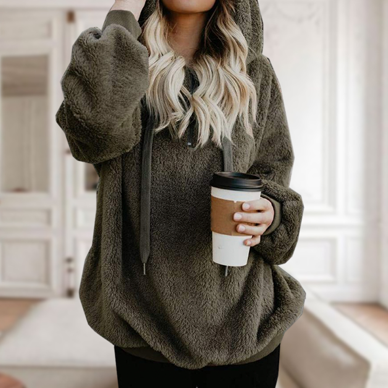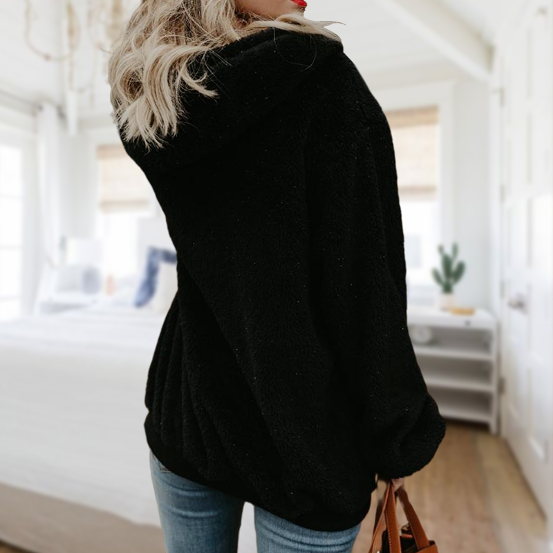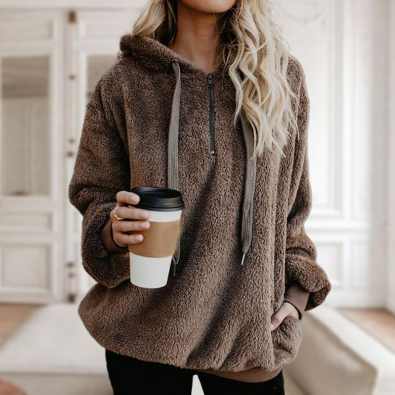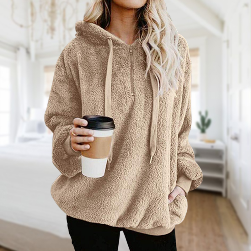 Solid Color Drawstring Zipper Hooded Fleece Sweatshirt