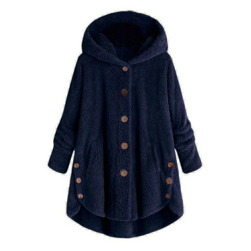 Plus Size Hooded Button Up Front Long Fleece Jacket