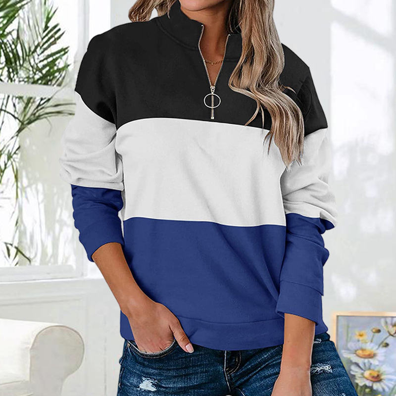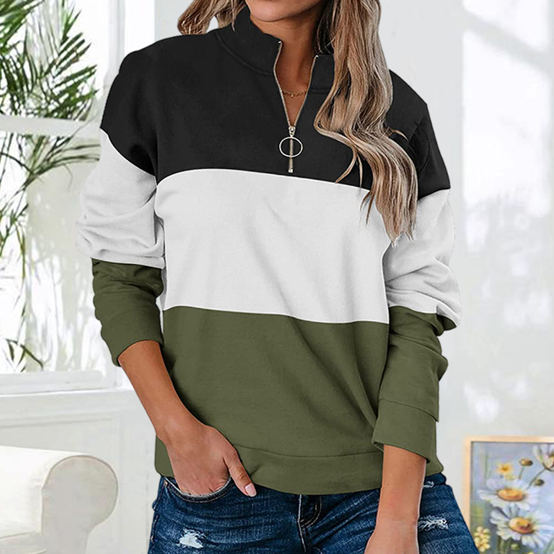 V-neck Zipper Long Sleeve Color Block Sweatshirt
