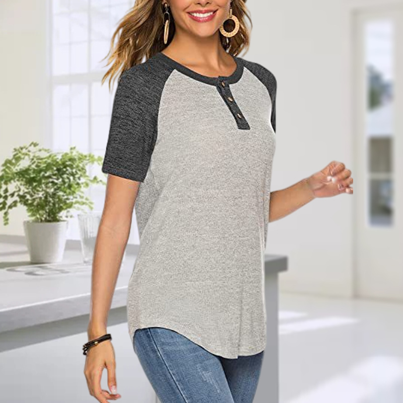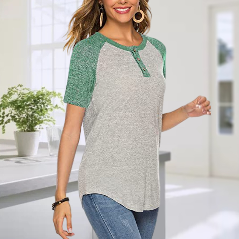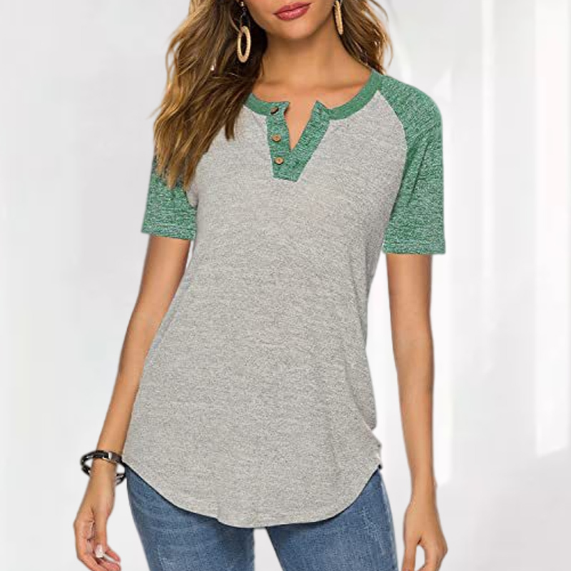 Color Blocking V-neck Short-Sleeved Casual T-shirt