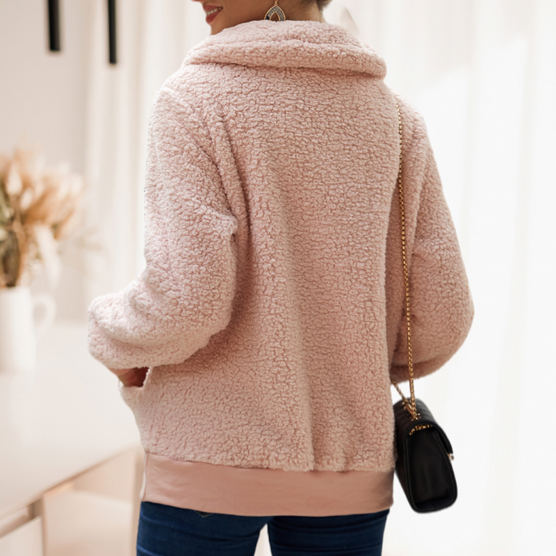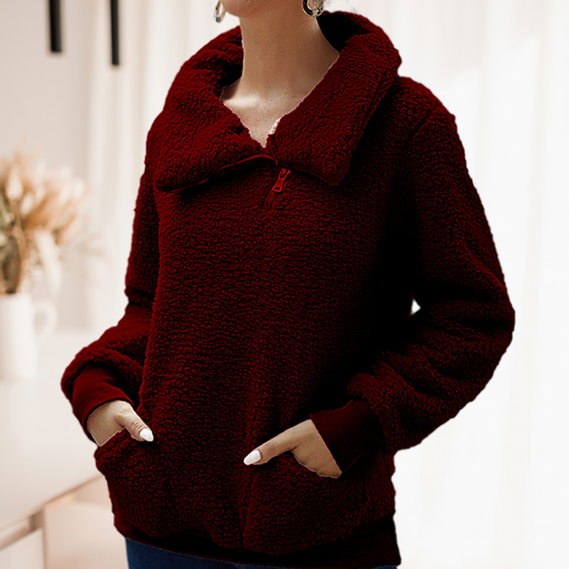 Solid Color Lapel Collar Zipper Fleece Sweatshirt