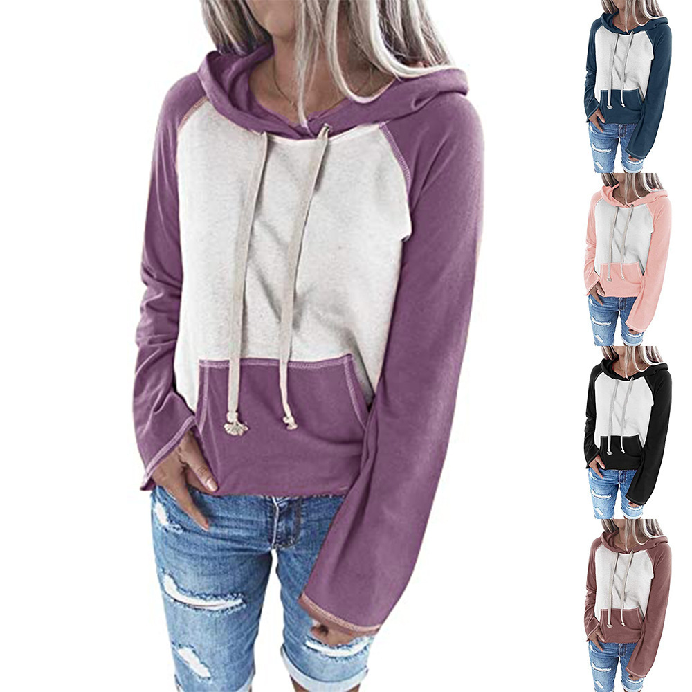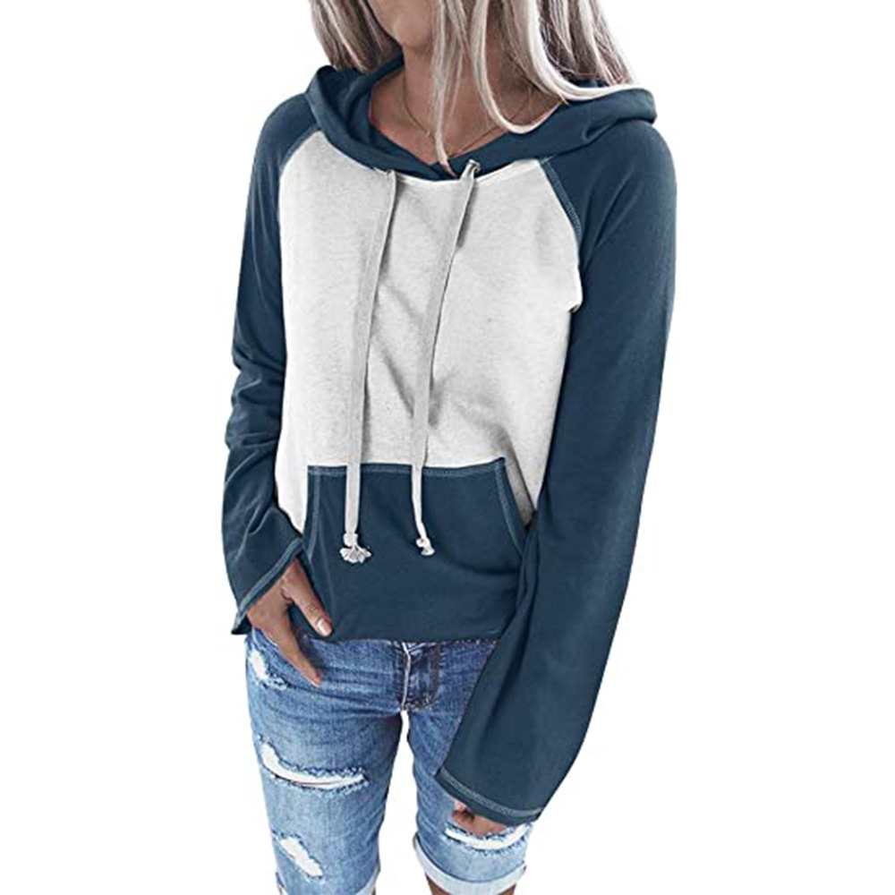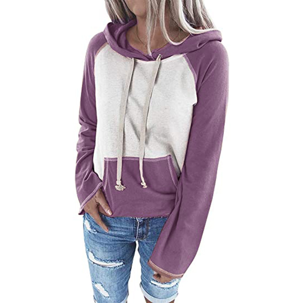Color Blocking Hooded Long-Sleeved Sweatshirt