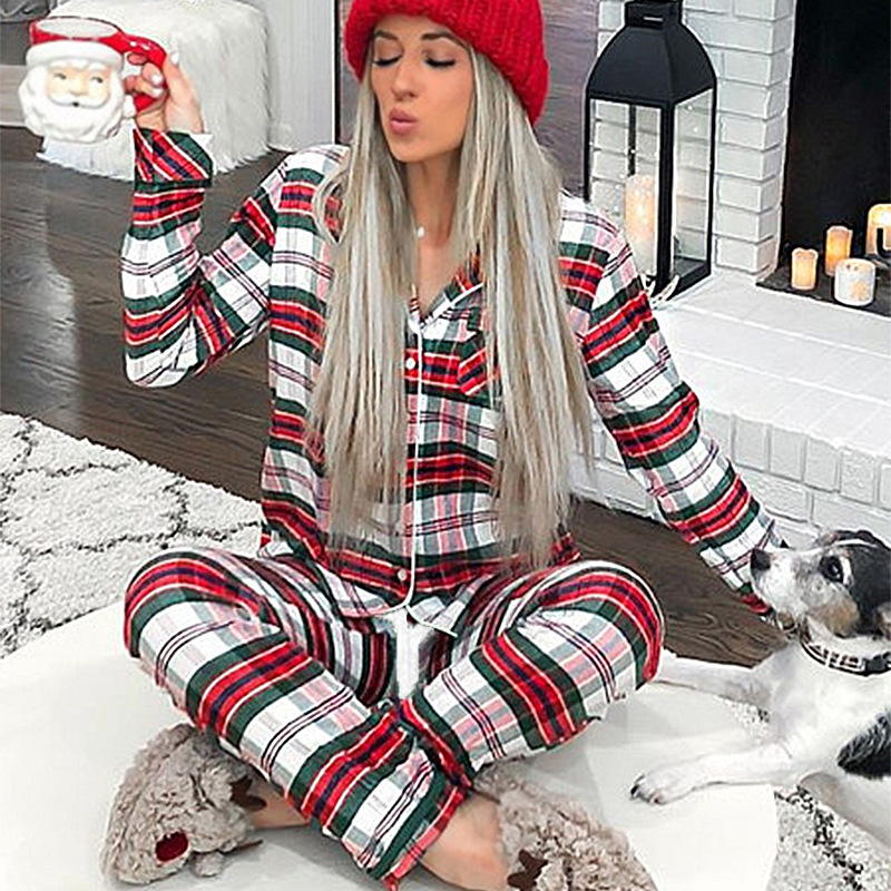 Check Print Long Sleeve Shirt and Pants Loungewear Set