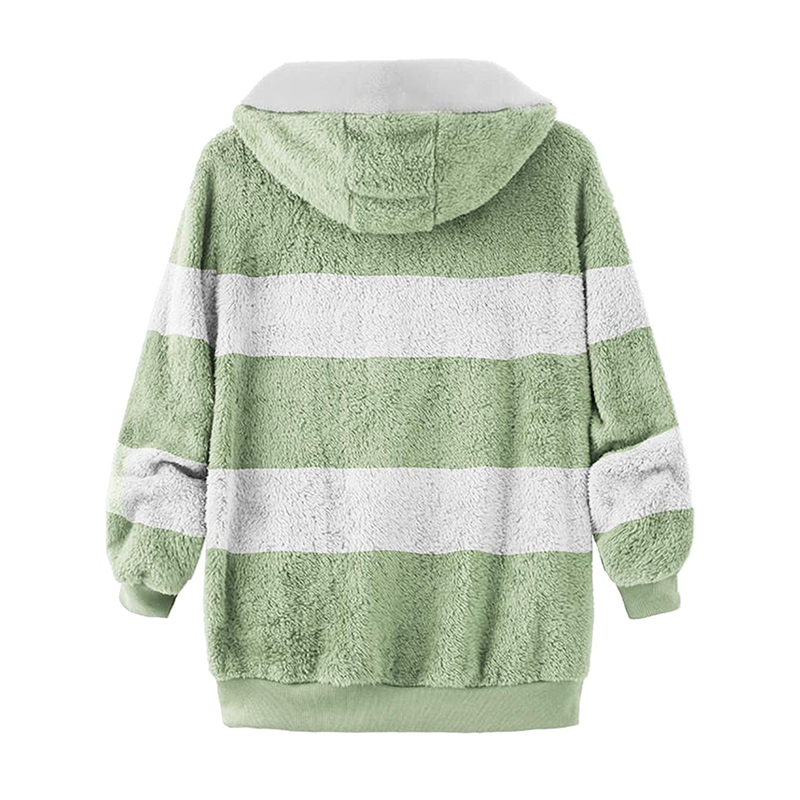 Plus Size Striped Long Sleeve Drawstring Hooded Fleece Jacket