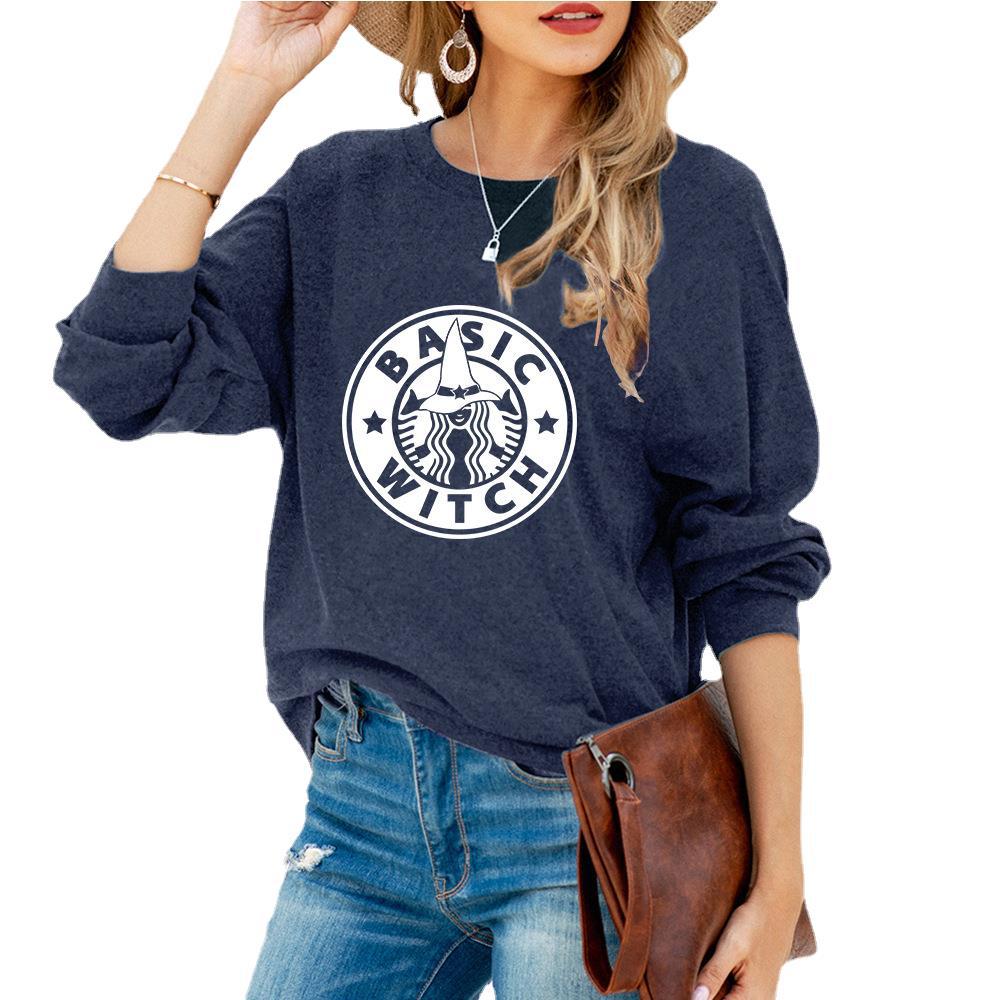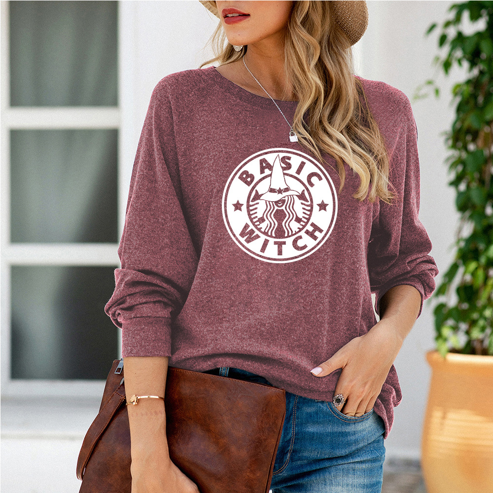 BASIC WITCH Halloween Skeleton Print Long-Sleeved T-Shirt