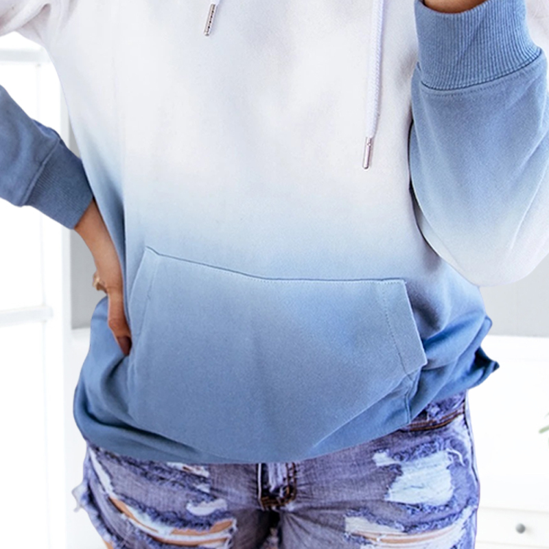 Casual Gradient Color Hooded Long Sleeve Sweatshirt