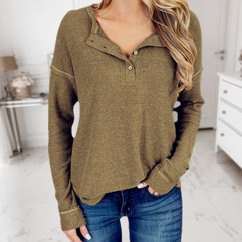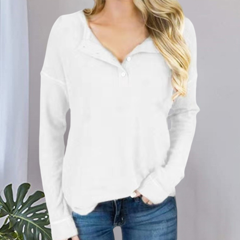 Casual Solid Color Half Open Collar Long-Sleeved Top