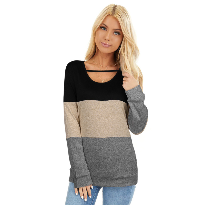 Casual Splicing Long-Sleeved Loose T-Shirt
