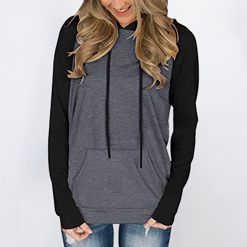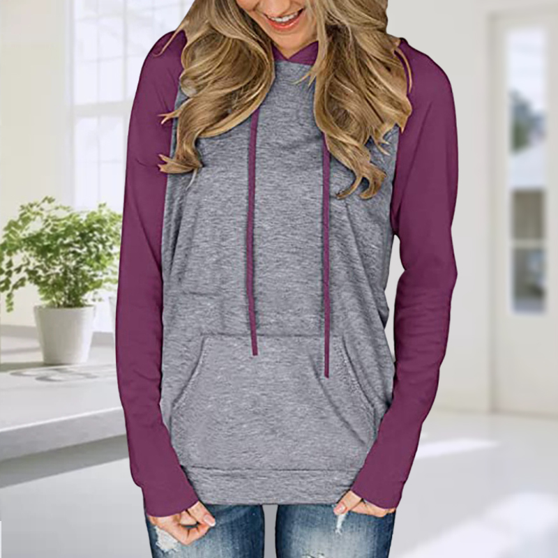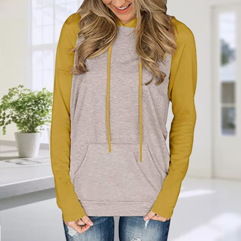 Color Blocking Casual Hooded Long Sleeve Sweatshirt