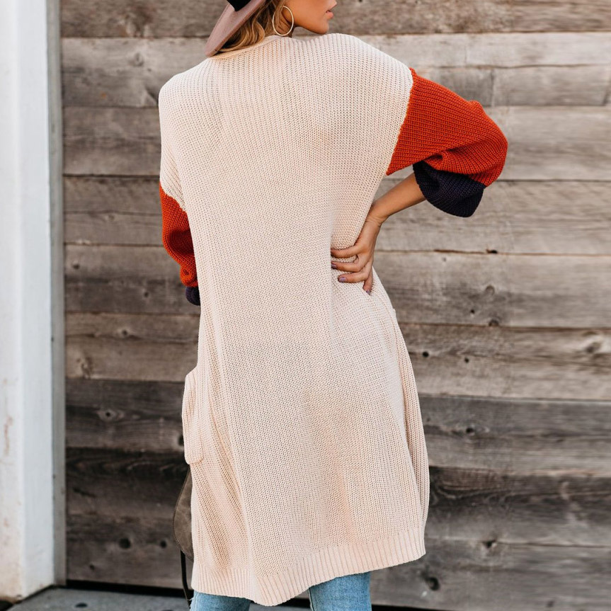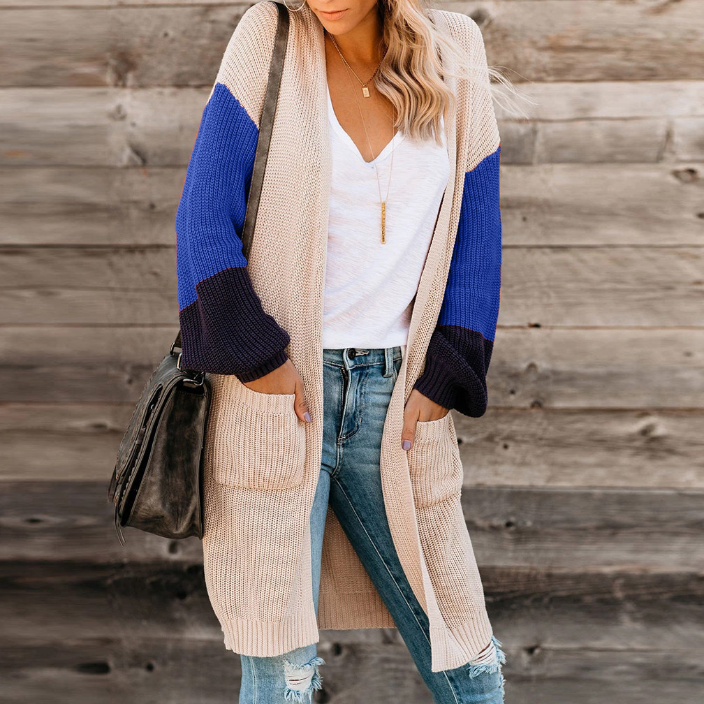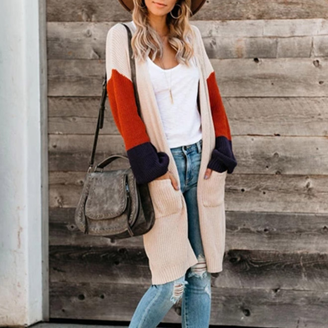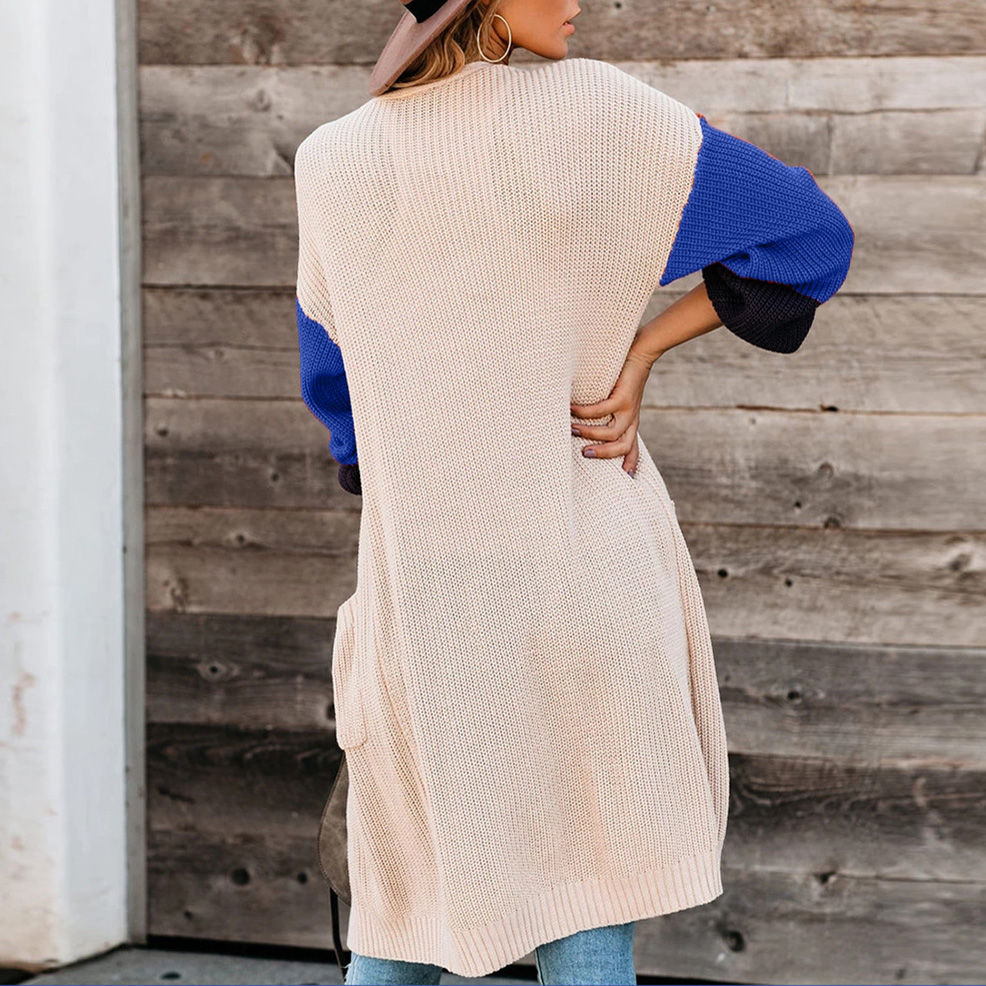 Color Blocking Knitted Long Sleeve Cardigan