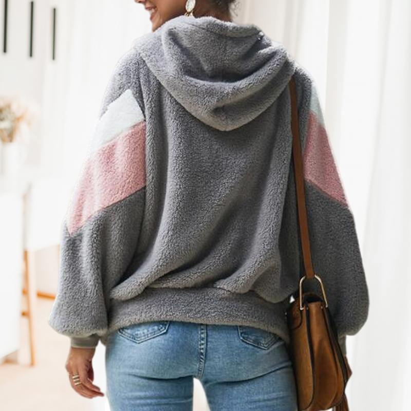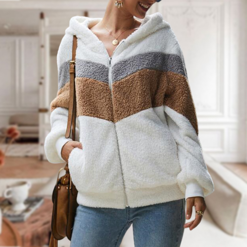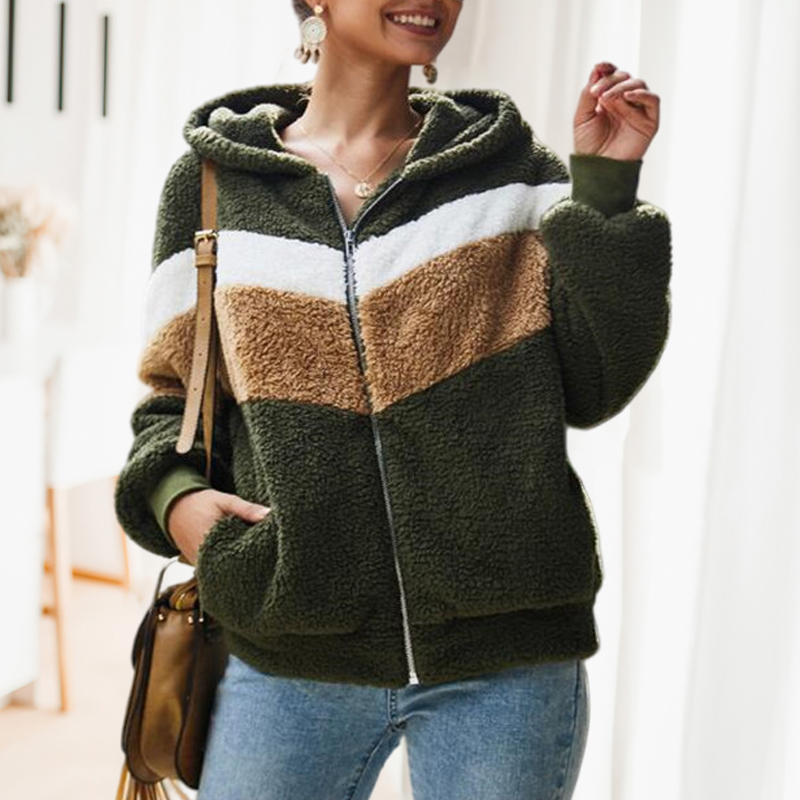 Color Blocking Long Sleeve Zipper Hooded Fleece Jacket