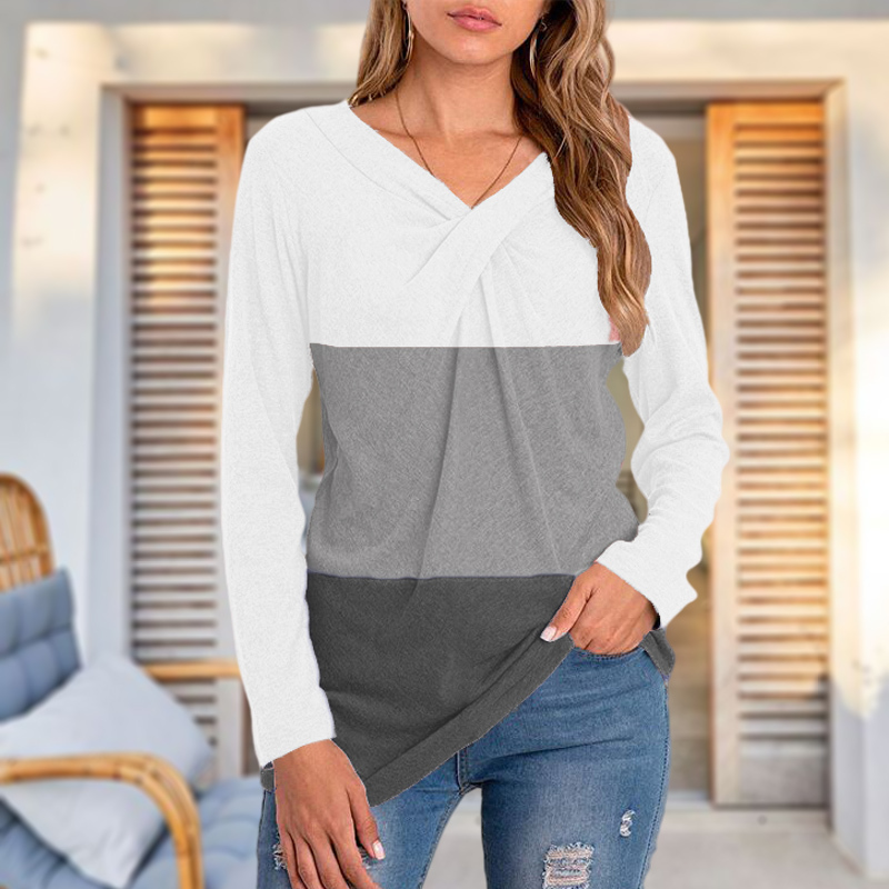 Knotted Front V-neck Long-Sleeved T-shirt