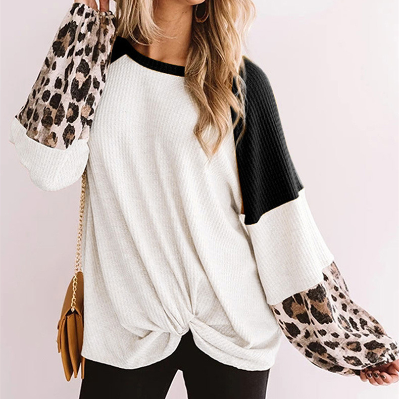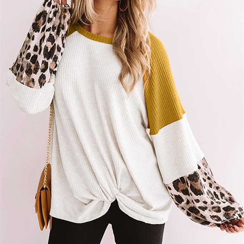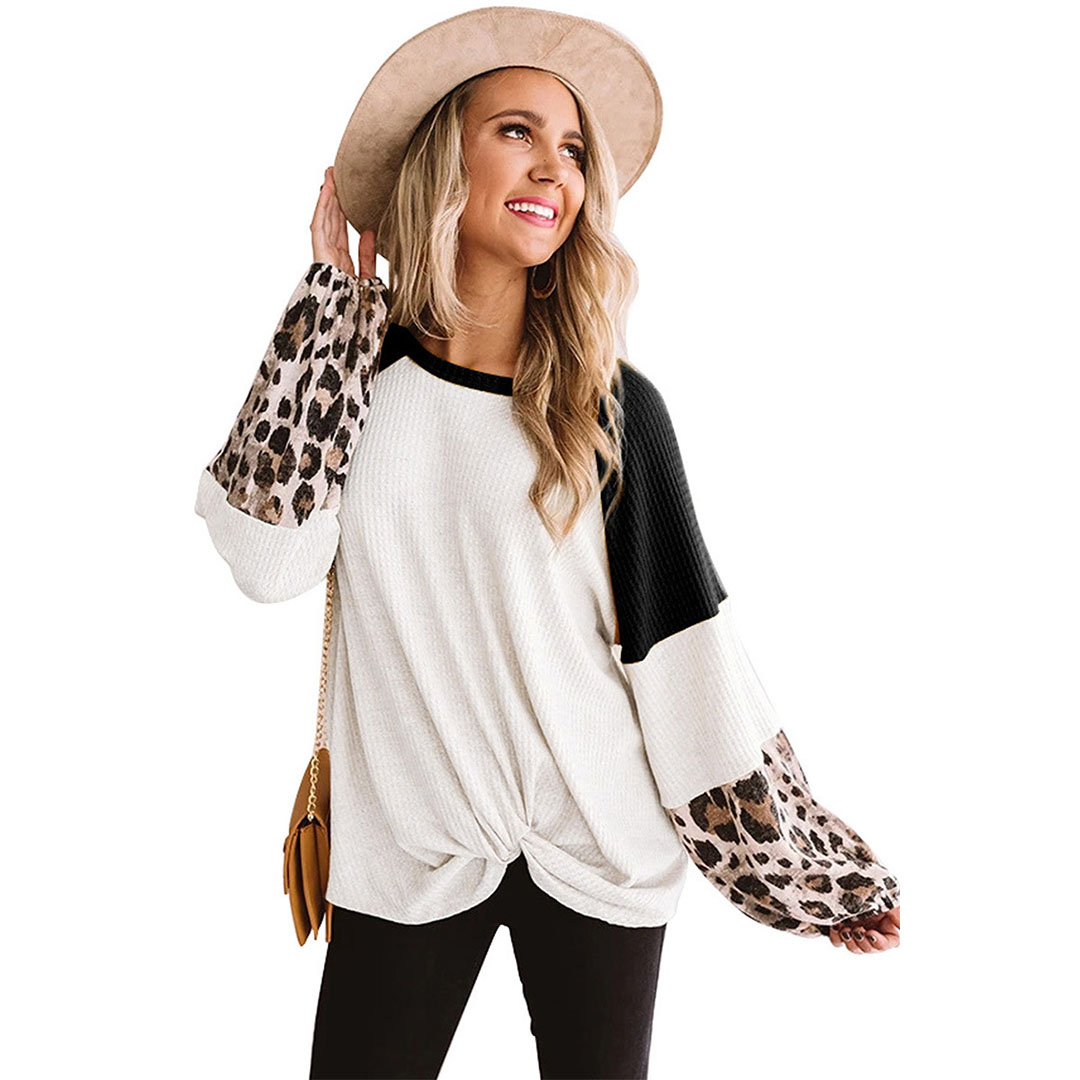 Leopard Print Patchwork Knitted Long Sleeve Top