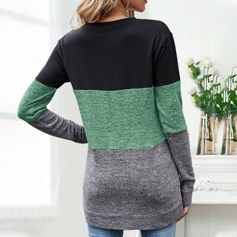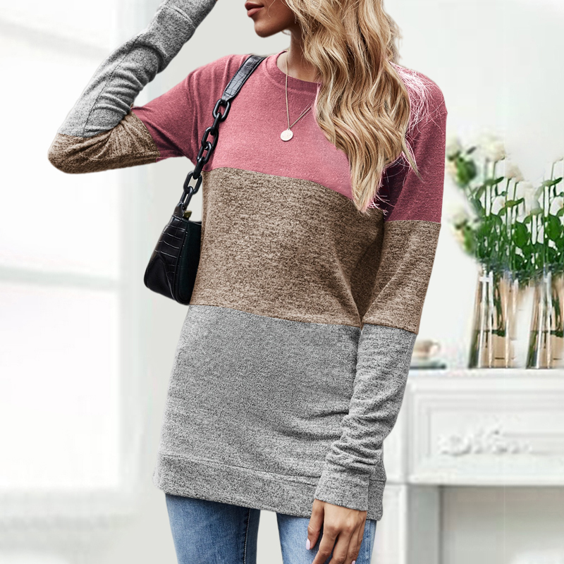 O-Neck Color Blocking Long Sleeve Casual T-shirt