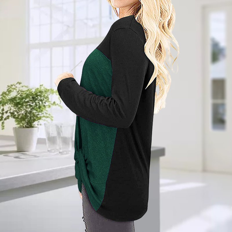 Casual Comfy t-shirts for women is made of soft blended cotton fabric. Skin-friendly and stretchy durable as well. A really great addition to your wardrobe. Color stitching t-shirts with twist knotted hem design is an unique and fashionable choice for women. Loose fitting provide a comfortable and relaxed feeling for you in any occasion. It's a really versatile tunic tops in all occasions.