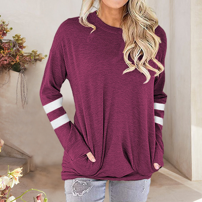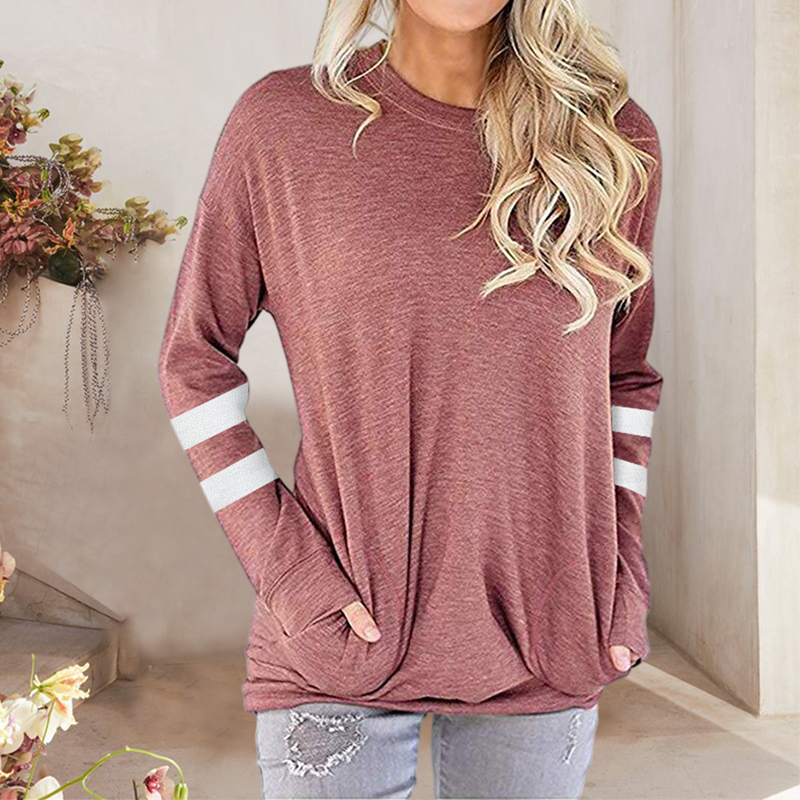 O-Neck Striped Solid Color Long Sleeve T-Shirt