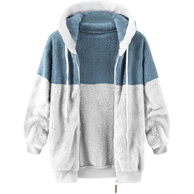 Plus Size Color Blocking Drawstring Hooded Fleece Jacket