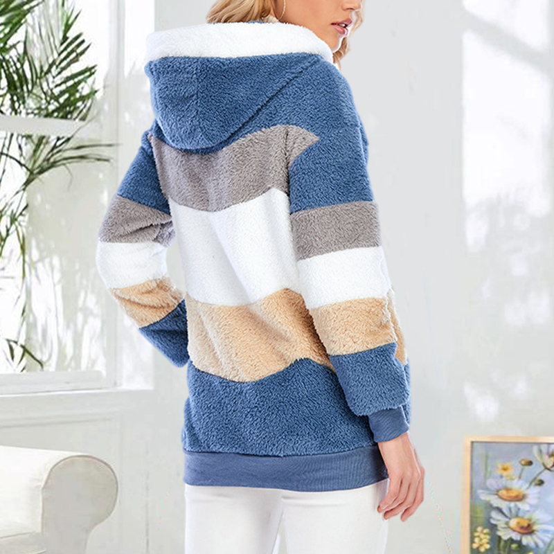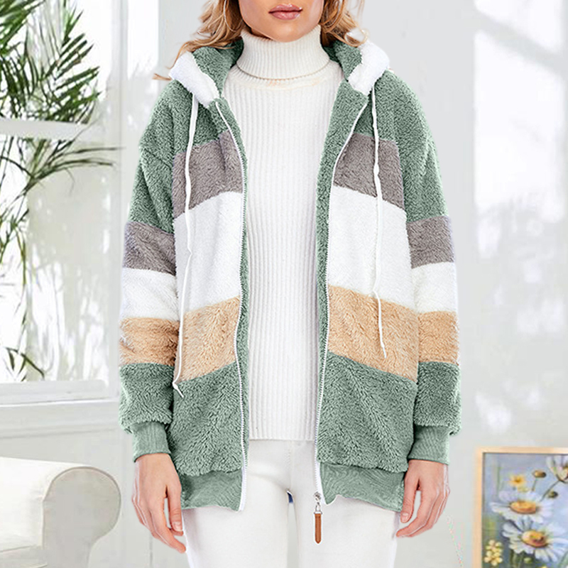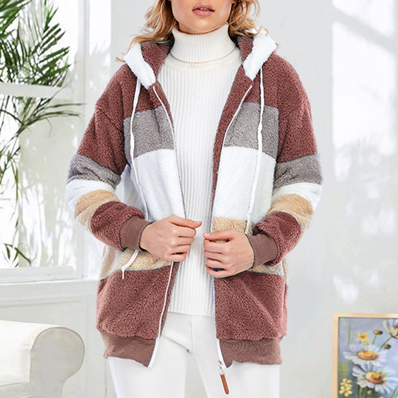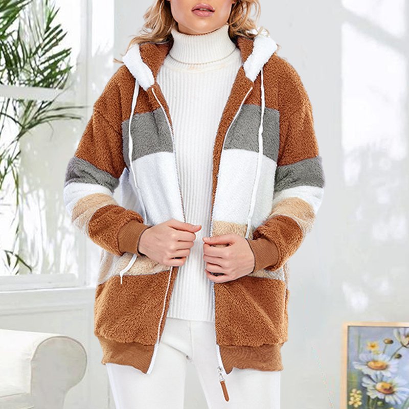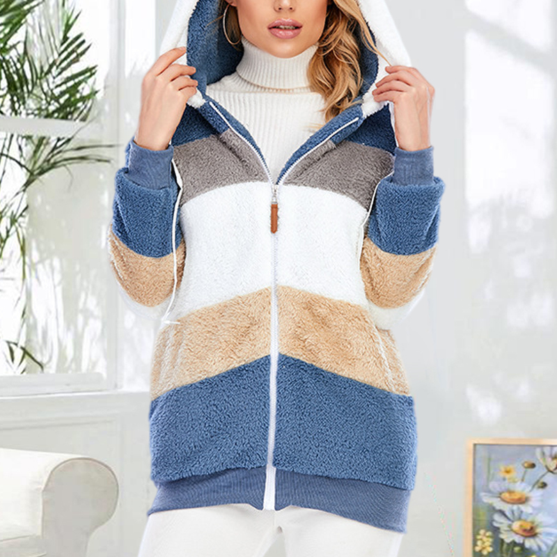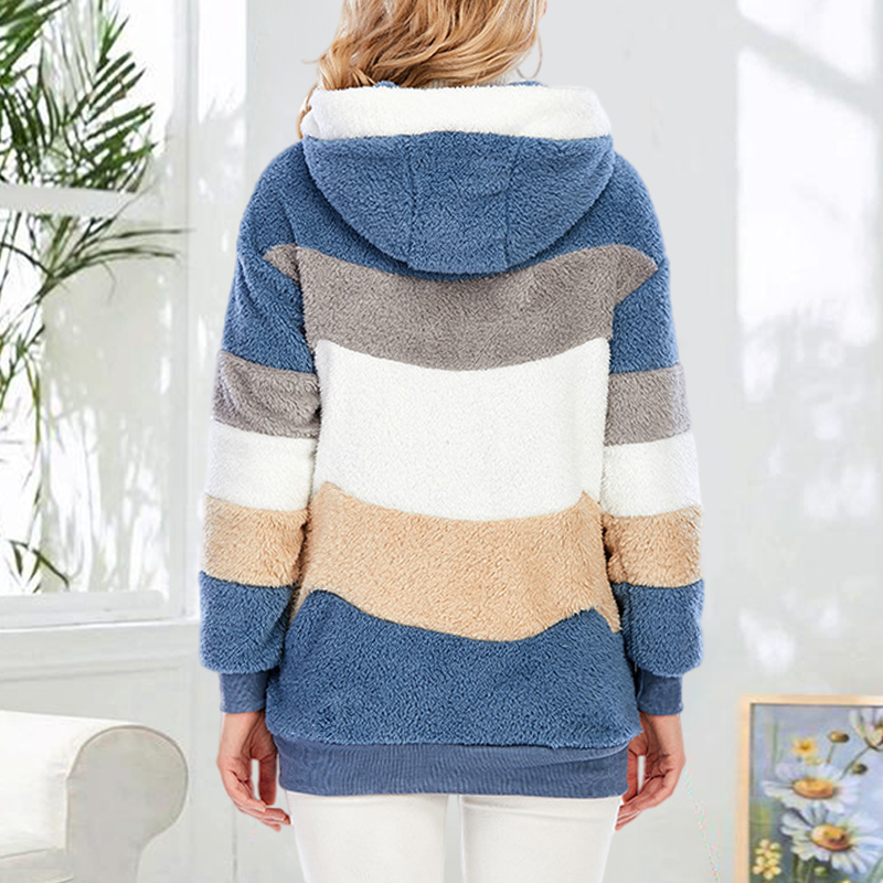Plus Size Color Blocking Hooded Fleece Jacket