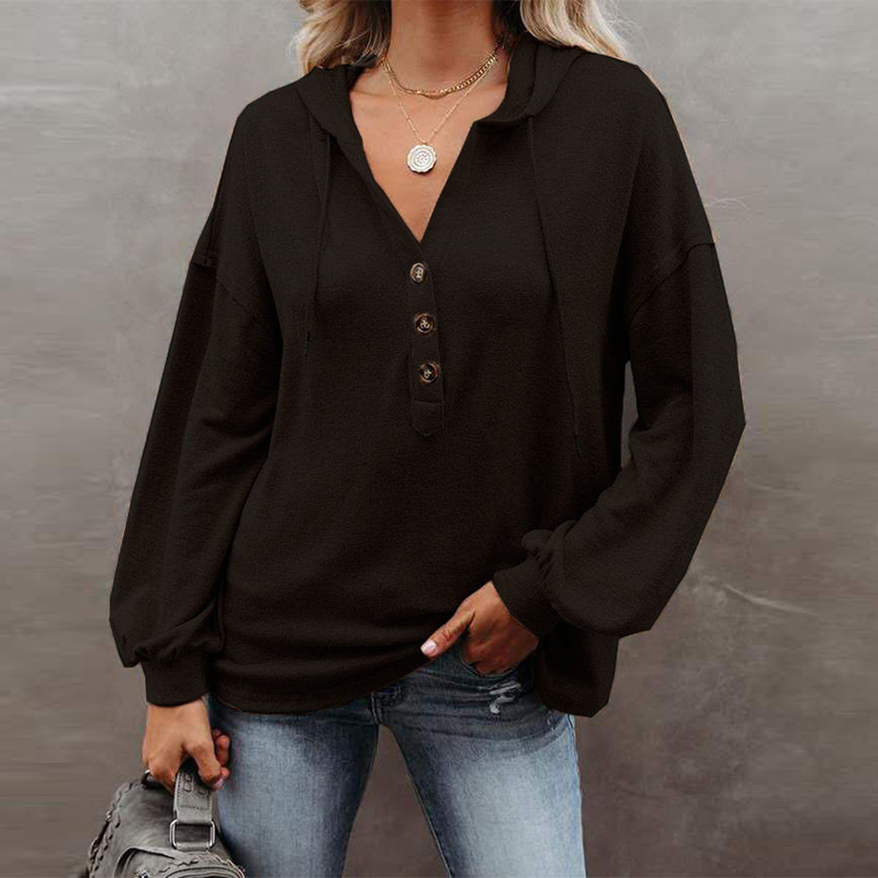 Plus Size Solid Color Loose Hooded Long Sleeve Sweatshirt