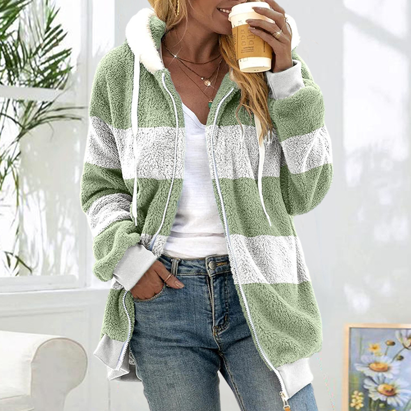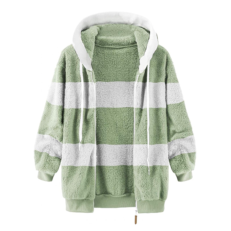 Plus Size Striped Long Sleeve Drawstring Hooded Fleece Jacket