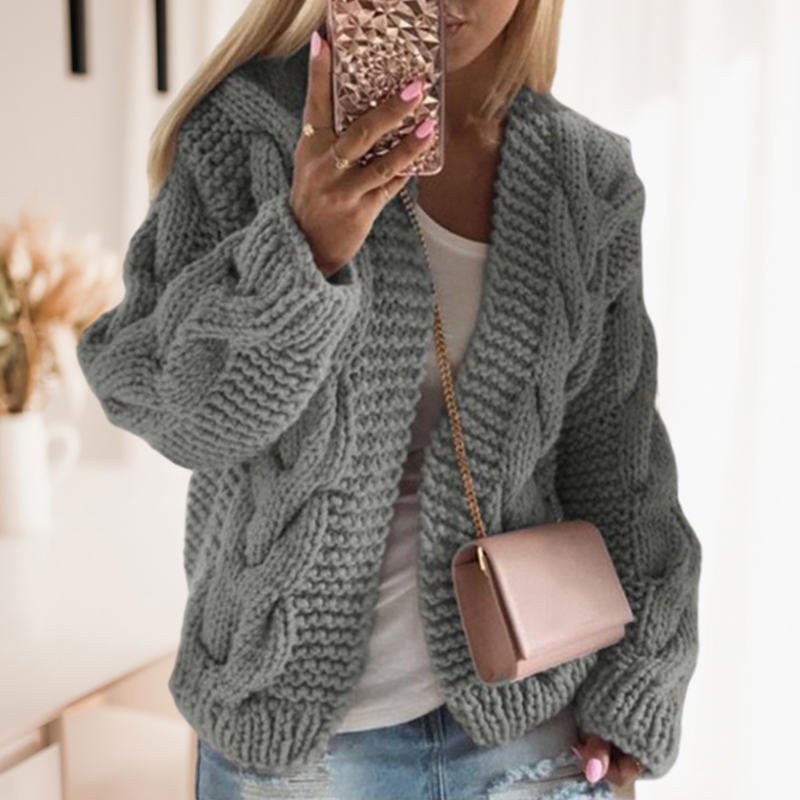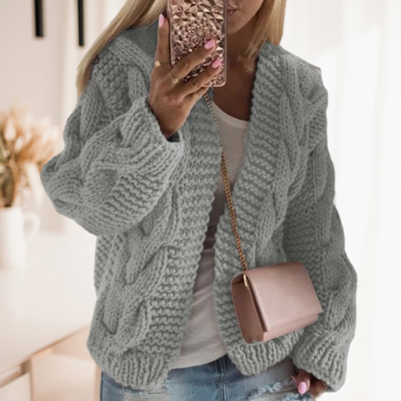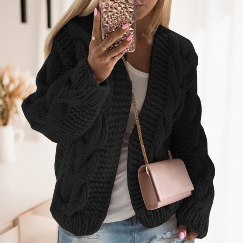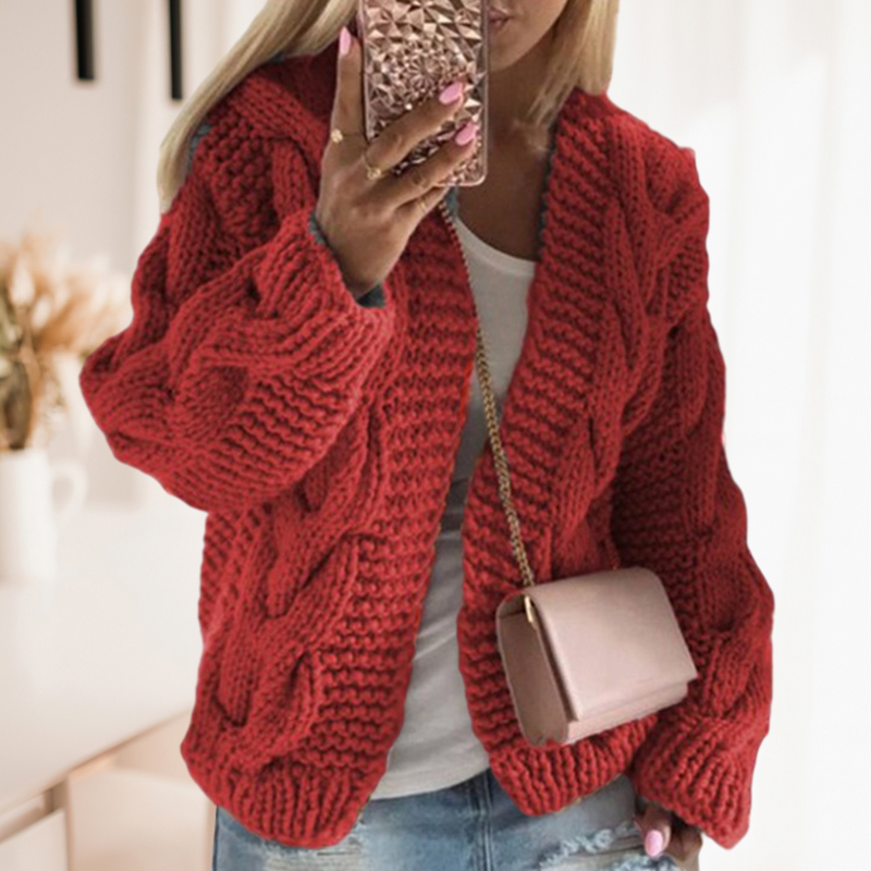 Plus Size Twist Knit Hooded Sweater Cardigan