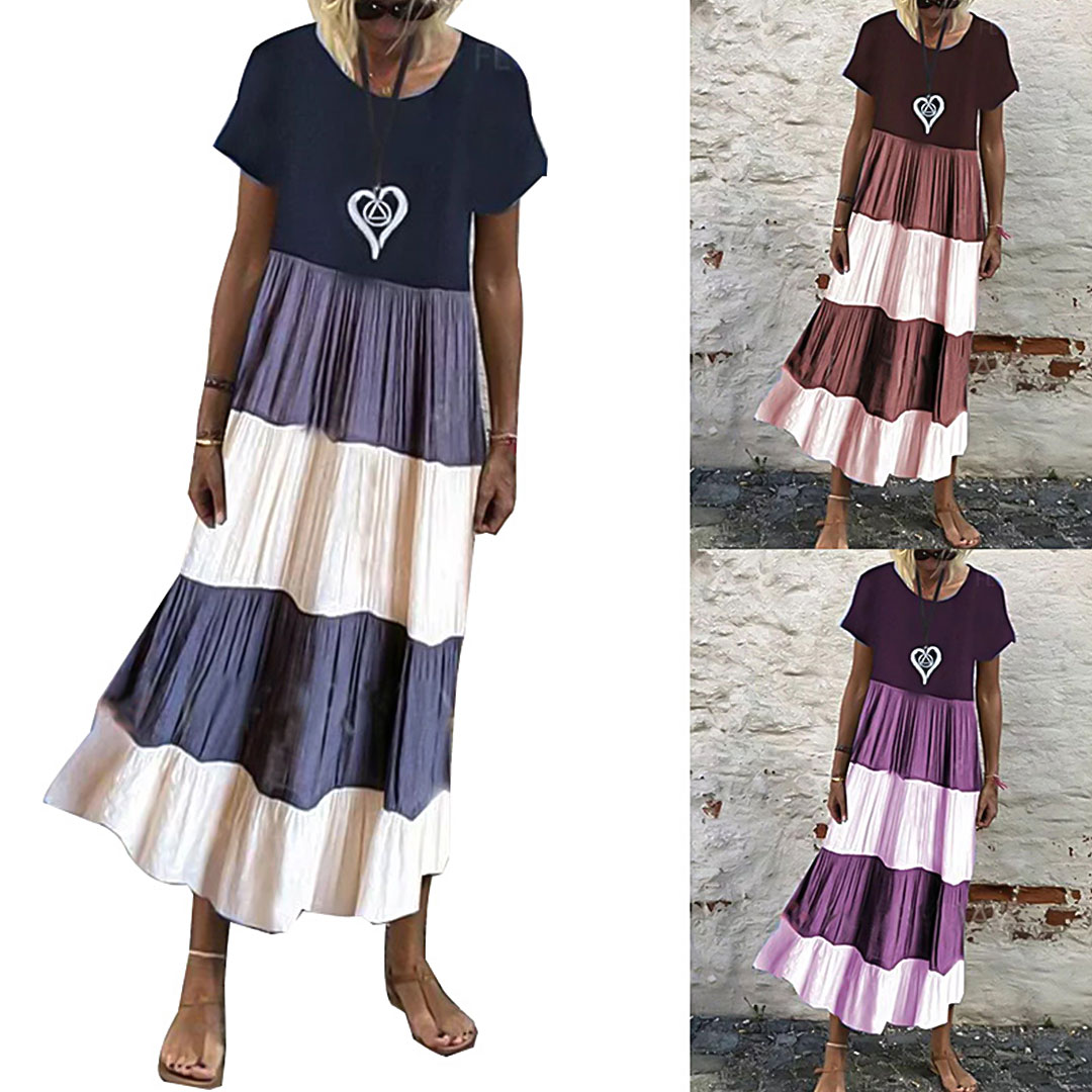 Short Sleeve Stitching Maxi Dress