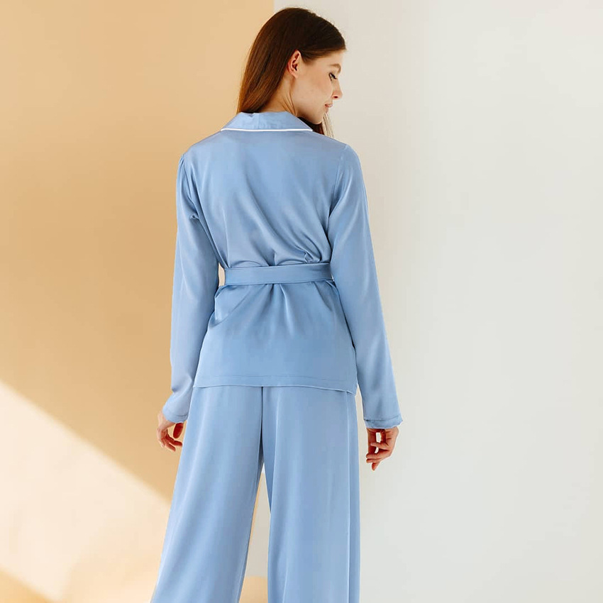 Satin Knotted Front Top and Pants Pyjama Set