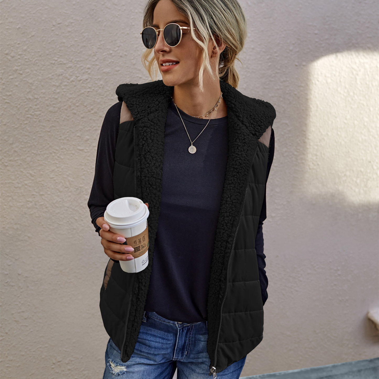 Simple Patchwork Plush Two-Sided Jacket