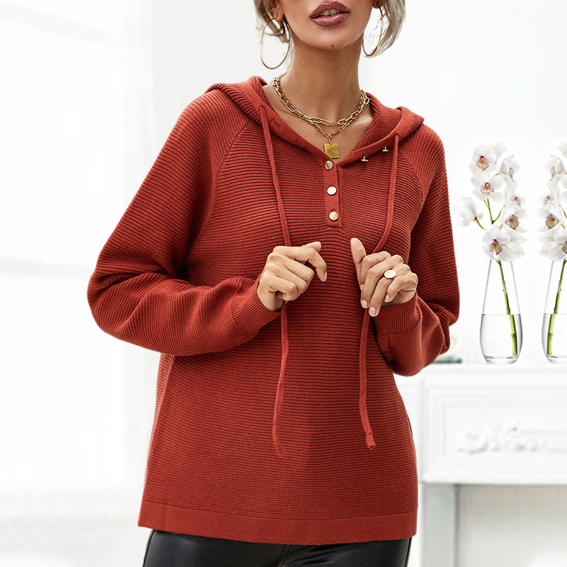 Solid Color Hooded Long Sleeve Knit Sweater